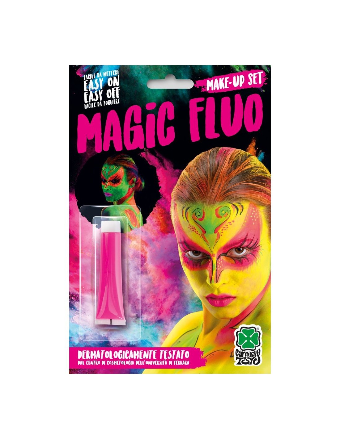 Il tubetto di fondotinta rosa fluo e G.I.D. (Glow in the Dark) da 20 ml circa è l'accessorio perfetto per creare effetti spettacolari nel tuo trucco. Questo fondotinta speciale si distingue per la sua doppia proprietà: brilla intensamente sotto la luce ultravioletta con un vivace colore rosa fluo e si illumina al buio grazie alla tecnologia fosforescente. La formula cremosa si stende facilmente sulla pelle garantendo una copertura uniforme e un effetto visivo mozzafiato. Il formato compatto da 20 ml permette di truccare completamente il viso o creare dettagli artistici su diverse parti del corpo.