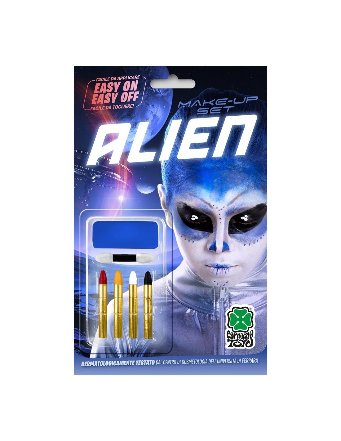 Trasformati in un inquietante alieno con questo completo set di trucco professionale. Il kit include fondotinta blu per creare la caratteristica pelle extraterrestre e 4 matite colorate per completare il makeup con dettagli realistici. Perfetto per realizzare look da creatura spaziale, essere di altri mondi o personaggio fantascientifico con effetti speciali convincenti.
