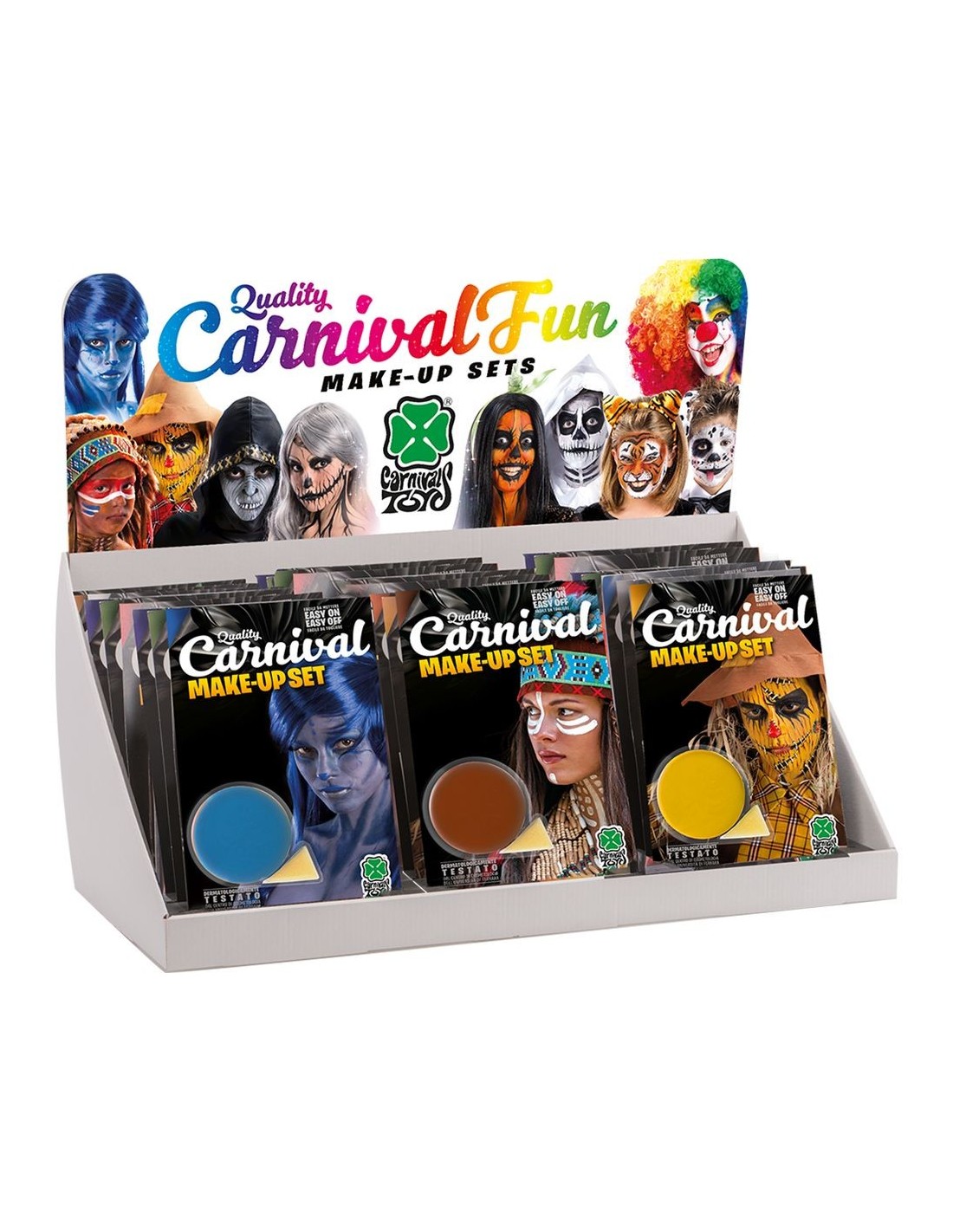L'espositore contiene 24 vasetti di fondotinta colorato da circa 10 grammi ciascuno, perfetto per negozi di costumi, truccatori professionali o per chi organizza feste a tema. I colori assortiti permettono di creare qualsiasi look teatrale, dal trucco base ai personaggi più fantasiosi. Ogni vasetto offre una copertura uniforme e duratura, ideale per trasformazioni complete del viso. L'espositore compatto facilita l'esposizione e la scelta del colore desiderato.