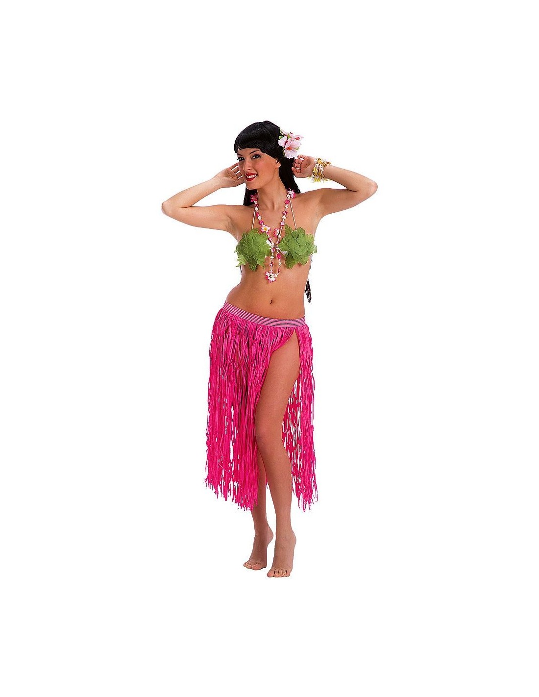 Trasformati in una perfetta danzatrice hawaiana con questa vivace gonna in rafia rosa fluo lunga circa 70 cm. Realizzata in autentica rafia sintetica, questa gonna tropicale presenta frange sfilacciate che si muovono seguendo ogni movimento, creando l'effetto perfetto per danze polinesiane e feste a tema. Il colore rosa acceso dona luminosità e allegria al look, mentre la cintura elastica assicura una vestibilità comoda. La gonna è venduta singolarmente, ideale per completare il tuo costume hawaiano con top coordinato e accessori tropicali.