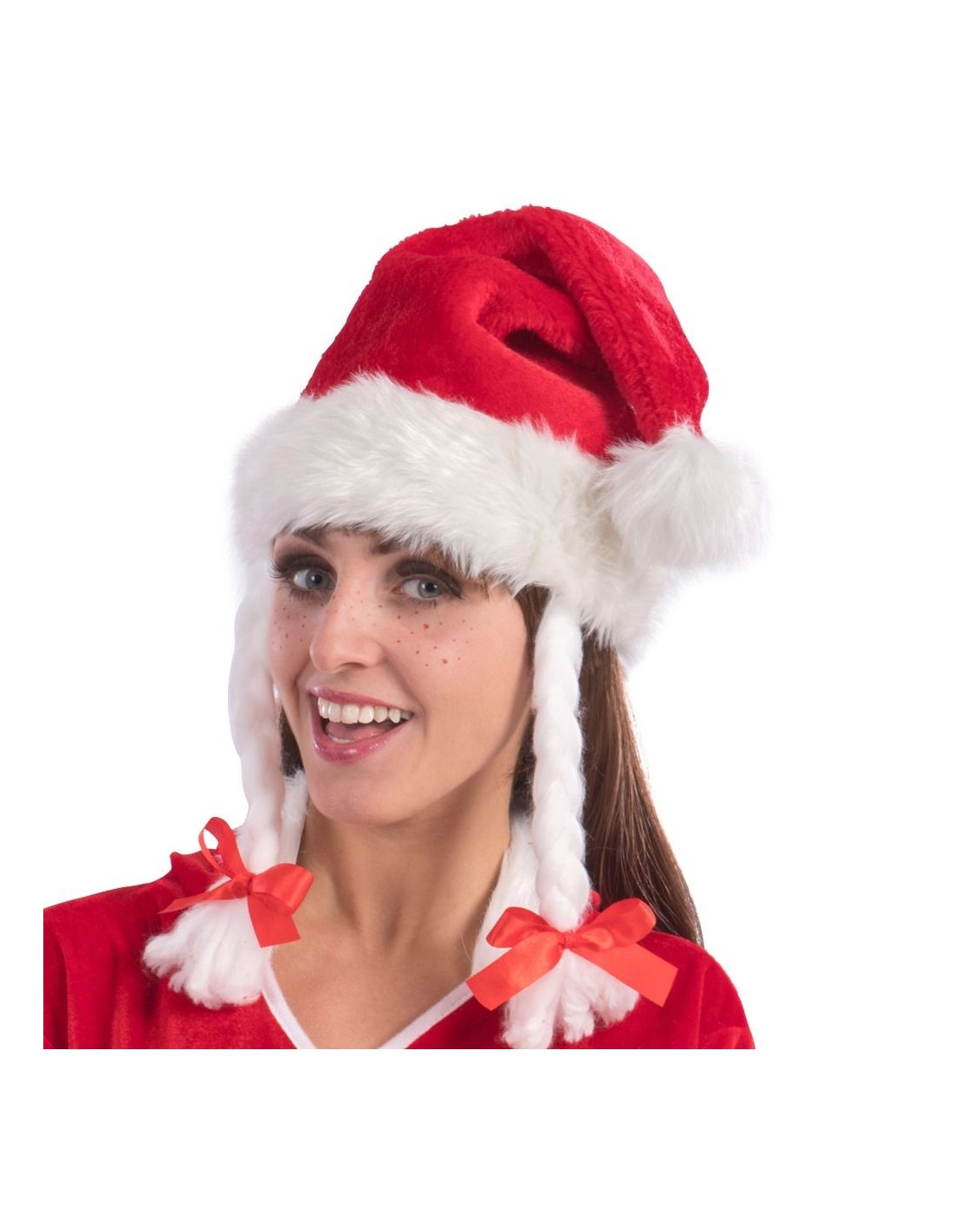 Il Cappuccio Babbo Natale in peluche con trecce è l'accessorio perfetto per entrare nello spirito natalizio. Realizzato in morbido tessuto peluche rosso con bordatura bianca soffice, presenta due lunghe trecce bianche laterali che scendono dalle orecchie e un pon pon finale. Il cappello ha una vestibilità comoda e si adatta facilmente alla testa grazie alla sua struttura morbida. Perfetto per completare qualsiasi costume natalizio o per aggiungere un tocco festoso al proprio look durante le feste.