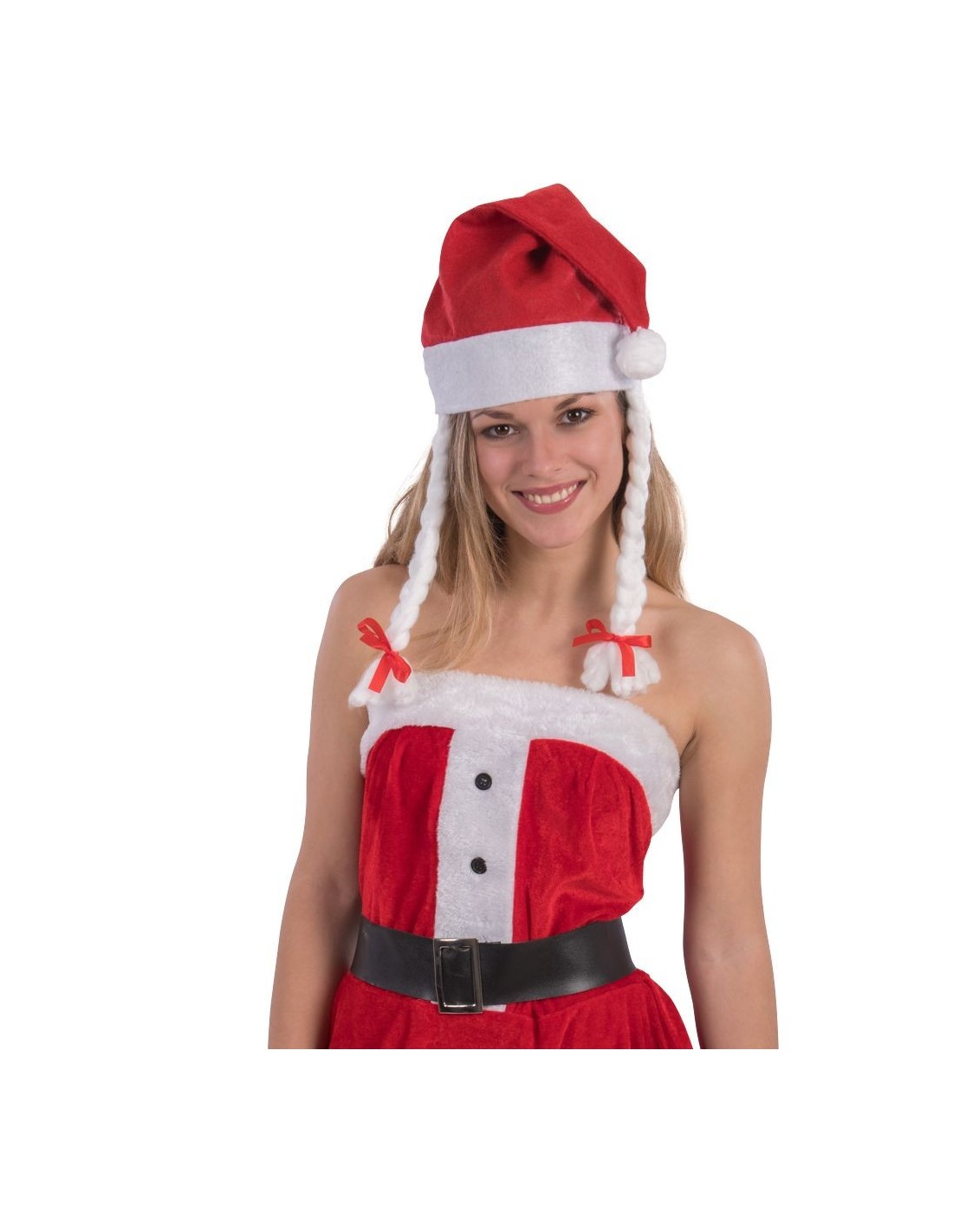 Il cappuccio Babbo Natale in panno rosso con trecce bianche è l'accessorio perfetto per completare il tuo look natalizio. Realizzato in morbido panno, presenta il classico colore rosso con bordatura bianca e simpatiche trecce laterali che aggiungono un tocco femminile e giocoso. L'accessorio è comodo da indossare e si adatta facilmente a diverse acconciature. Il design tradizionale richiama immediatamente l'atmosfera magica del Natale e di Babbo Natale.