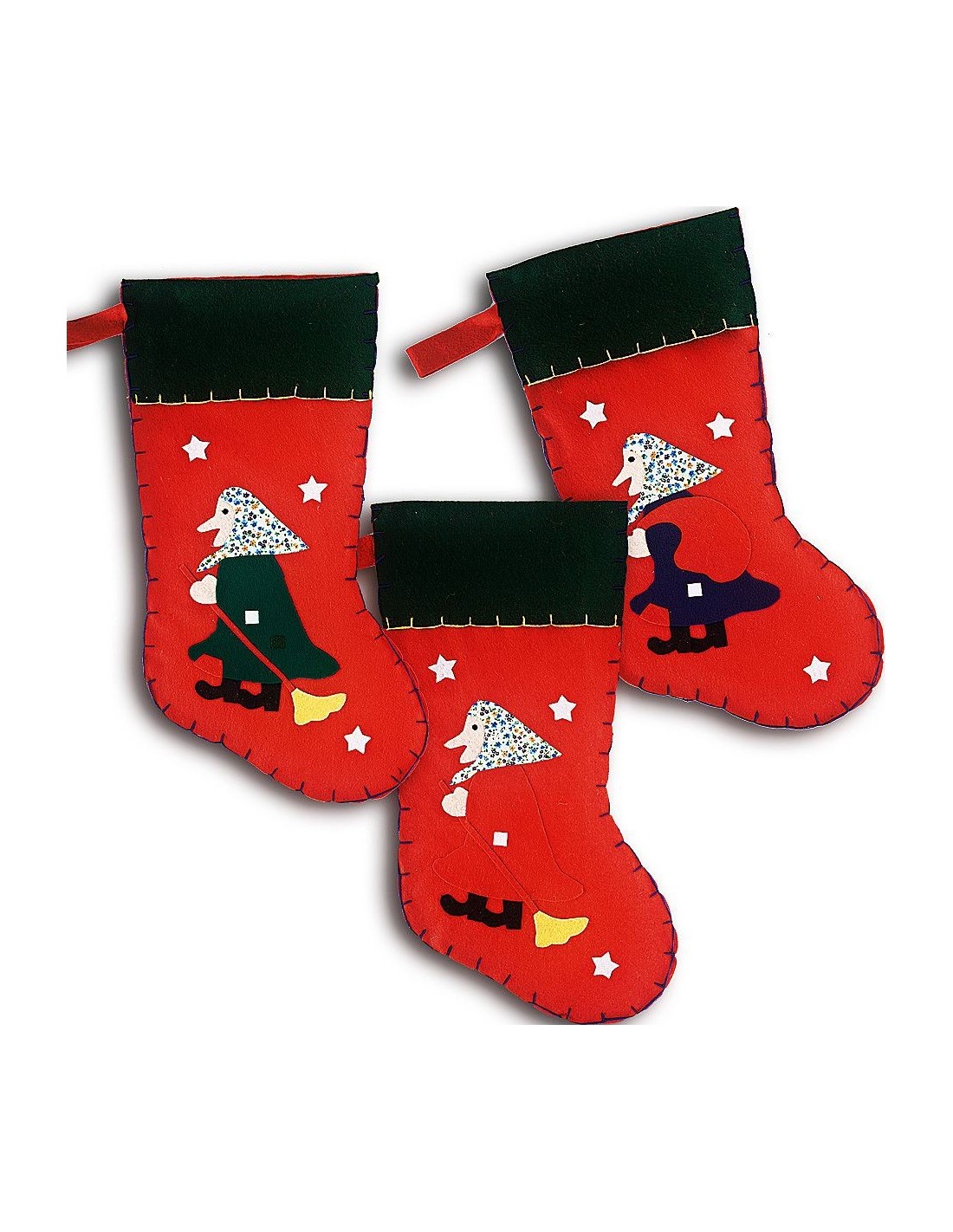 La tradizionale calza della Befana in feltro rosso con decorazioni natalizie è l'accessorio perfetto per celebrare l'Epifania. Questa calza misura circa 48 cm di lunghezza e presenta dettagli decorativi applicati sul tessuto rosso con bordatura verde scura. Il feltro garantisce resistenza e mantiene la forma tradizionale della calza befana. Ideale per essere appesa al camino o in casa, può contenere dolci, carbone dolce e piccoli regali per i bambini durante la notte del 6 gennaio.