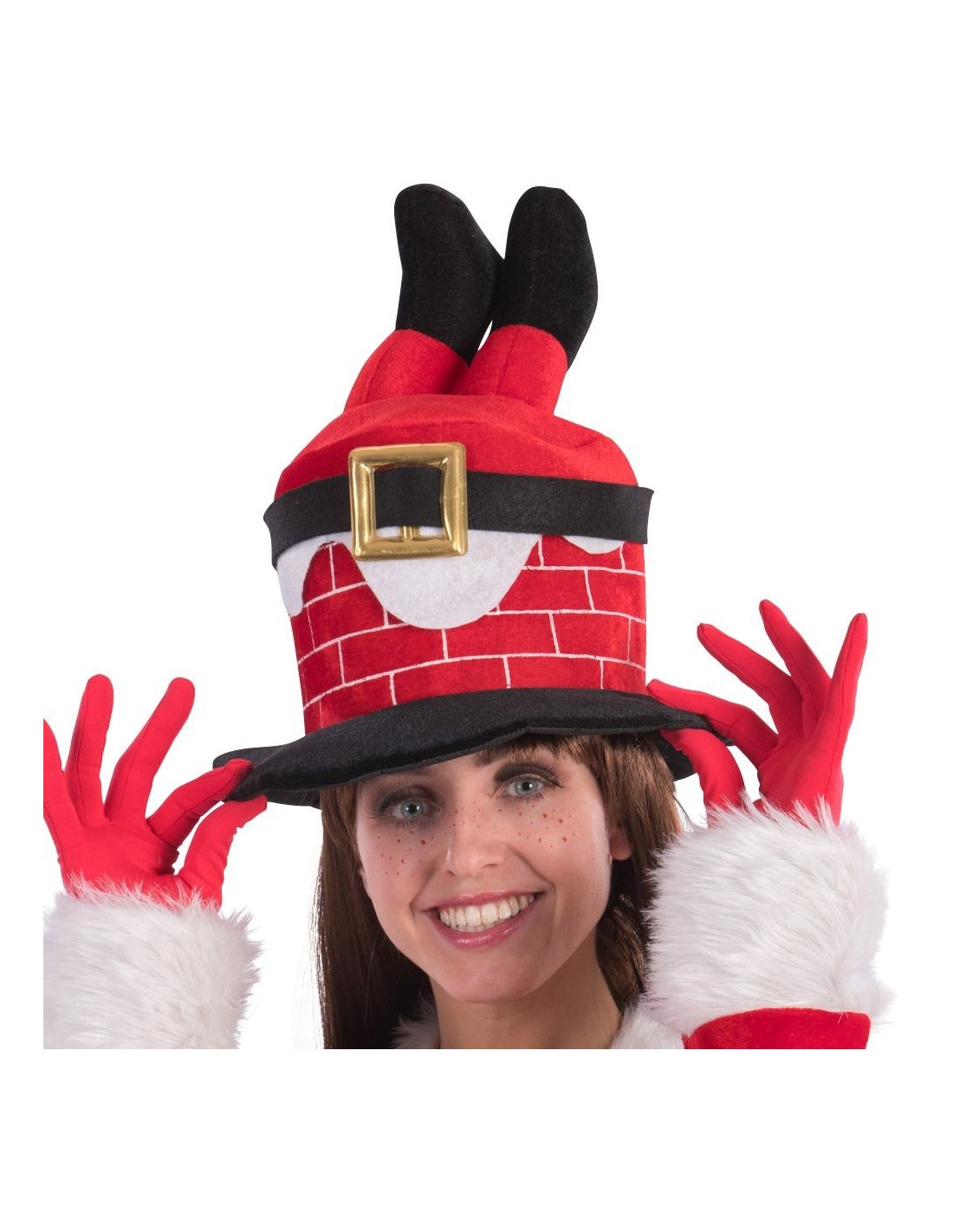 Questo divertente cappello di Babbo Natale in velluto rosso presenta un design originale che simula Babbo Natale bloccato nel comignolo. Il cappello è decorato con un finto camino in mattoni rossi, una cintura nera con fibbia dorata e due gambe che spuntano dalla cima. Realizzato in morbido velluto, questo accessorio natalizio garantisce comfort durante l'uso e un effetto scenico assicurato. Il design tridimensionale e i dettagli accurati lo rendono perfetto per chi vuole distinguersi durante le festività natalizie.