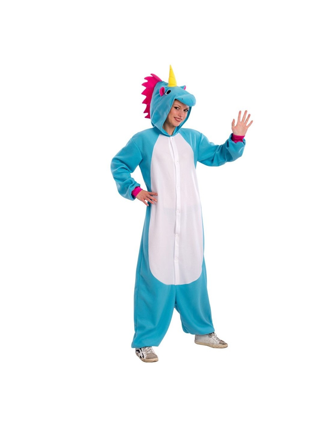 Trasformati nella creatura più magica del regno con questo adorabile costume da unicorno in morbido pile azzurro. Il set completo include una comoda tuta intera con cappuccio dotato di corno dorato e vivace criniera rosa, perfetto per entrare nel personaggio. Il pile garantisce calore e comfort durante tutte le tue avventure fantastiche, mentre il design con zip frontale facilita l'indossamento. Disponibile in taglia unica adatta dalla M alla XL, si adatta perfettamente a diverse corporature.