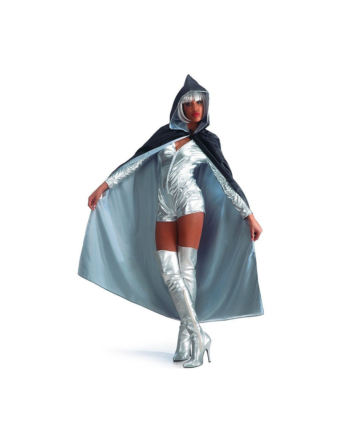 Elegante mantello double-face realizzato in taffetas, reversibile con lato bianco e lato nero, dotato di pratico cappuccio. La lunghezza di circa 140 cm offre un effetto scenografico perfetto per ogni trasformazione. Il design versatile permette di cambiare look semplicemente capovolgendo il mantello, rendendolo ideale per interpretare diversi personaggi. La chiusura frontale e il tessuto fluido garantiscono comfort e libertà di movimento.