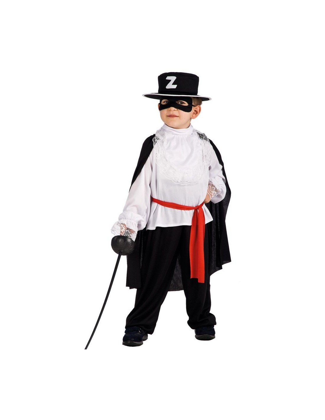Trasforma il tuo piccolo in un coraggioso spadaccino con questo affascinante costume completo. Il set include camicia bianca con dettagli eleganti, mantello nero teatrale, cintura rossa distintiva, cappello con la lettera Z, maschera nera misteriosa e spada per completare il look da eroe mascherato. Perfetto per bambini di 3 anni, questo costume da spadaccino richiama le atmosfere dei grandi classici dell'avventura e del teatro di cappa e spada.