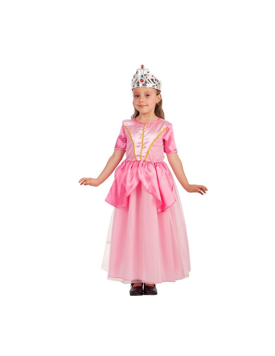 Splendido costume da principessa in tonalità rosa che trasformerà ogni bambina nella regina della festa. L'outfit completo comprende un magnifico abito lungo con corpetto decorato da eleganti dettagli dorati e gonna ampia in tessuto vaporoso. Il set include una corona scintillante per completare il look regale. Perfetto per bambine dai 6 ai 7 anni, questo costume garantisce comfort e libertà di movimento durante tutte le avventure da principessa.