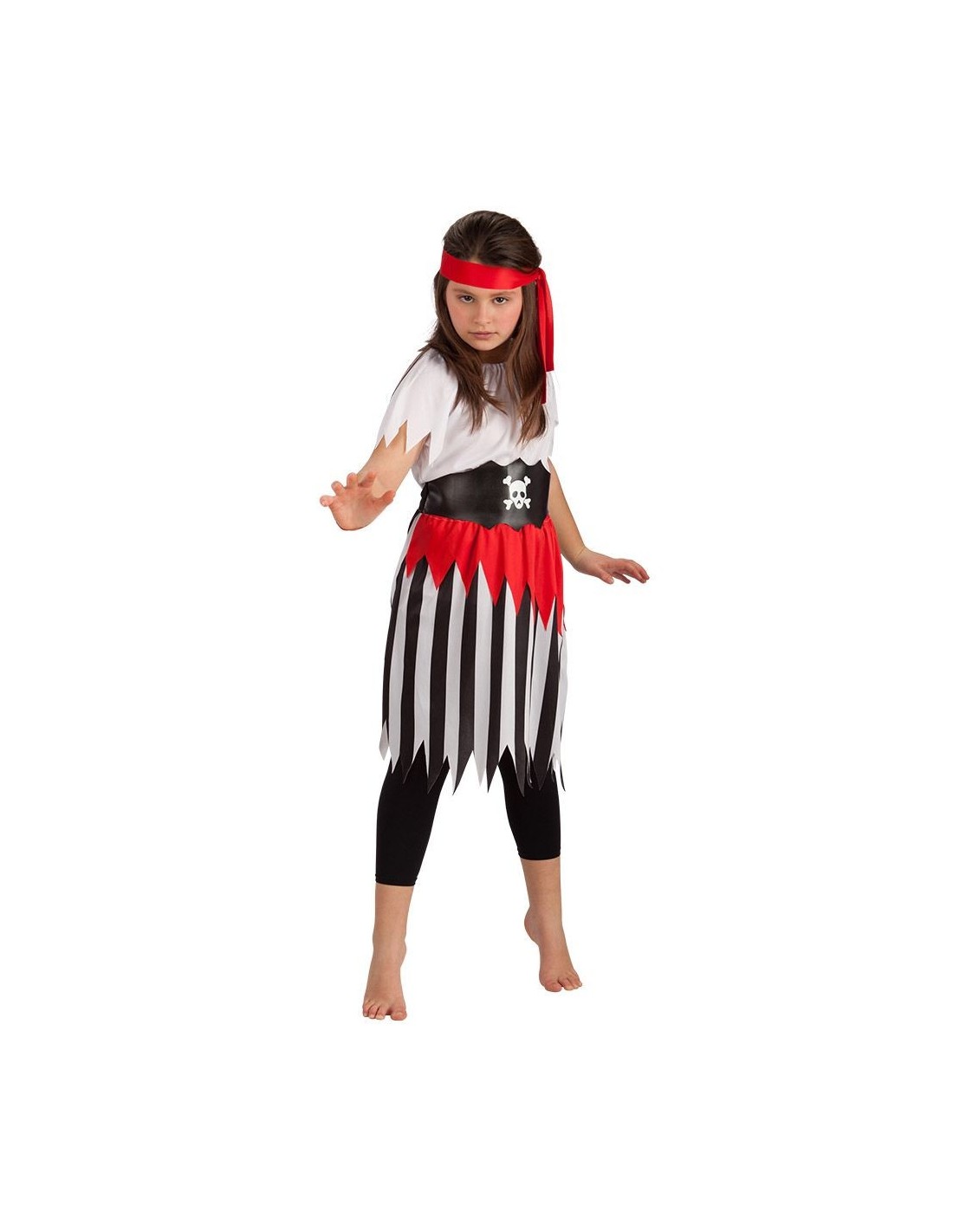 Trasformati nella più temuta corsara dei sette mari con questo affascinante costume da pirata per bambina! Il set include una comoda maglia bianca, una gonna a strisce bianche e nere con orlo sfrangiato che ricrea l'effetto strappato tipico dei pirati, una cintura nera con decorazione a teschio e un caratteristico foulard rosso per la testa. Il costume è realizzato in tessuti morbidi e confortevoli, perfetto per lunghe ore di gioco e avventure. Progettato specificamente per bambine di 5 anni, garantisce libertà di movimento e comfort durante l'utilizzo.