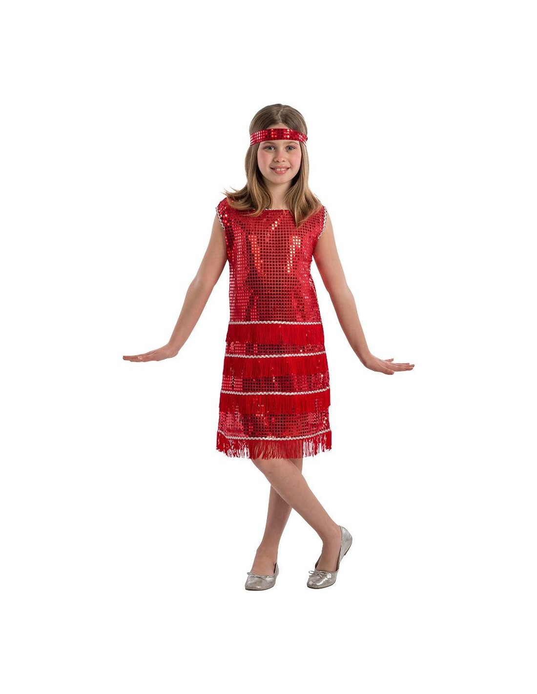 Splendido costume charleston rosso perfetto per far rivivere l'atmosfera degli anni '20 alle piccole star! Il vestito presenta decorazioni scintillanti con paillettes rosse che catturano la luce, completate da graziose frange che si muovono ad ogni passo di danza. Include una fascia per capelli coordinata con dettagli dorati che completa perfettamente il look vintage. Disponibile in taglia unica VI-VII, questo costume charleston trasforma ogni bambina in una piccola danzatrice dell'epoca del jazz.