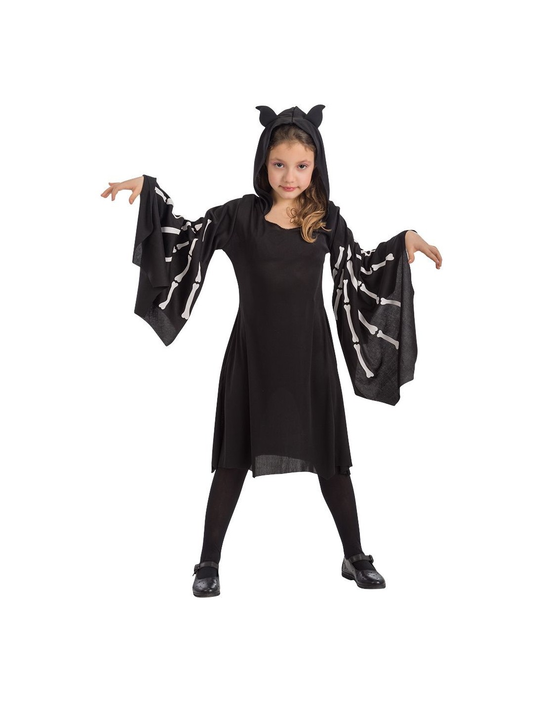 Trasforma la tua bambina in una dolce pipistrellina con questo affascinante costume nero completo di vestito elegante e spettacolari ali. Il set include un abito nero dal taglio svasato che arriva al ginocchio, perfetto per permettere libertà di movimento, e magnifiche ali di pipistrello con dettagli argentati che si estendono dalle maniche creando un effetto scenografico mozzafiato. Il cappuccio con orecchie da pipistrello completa il look regalando un tocco dolce e misterioso. Disponibile in taglia unica per bambine dai 5 ai 6 anni circa, questo costume è realizzato in tessuto confortevole che garantisce vestibilità ottimale per tutta la durata della festa.
