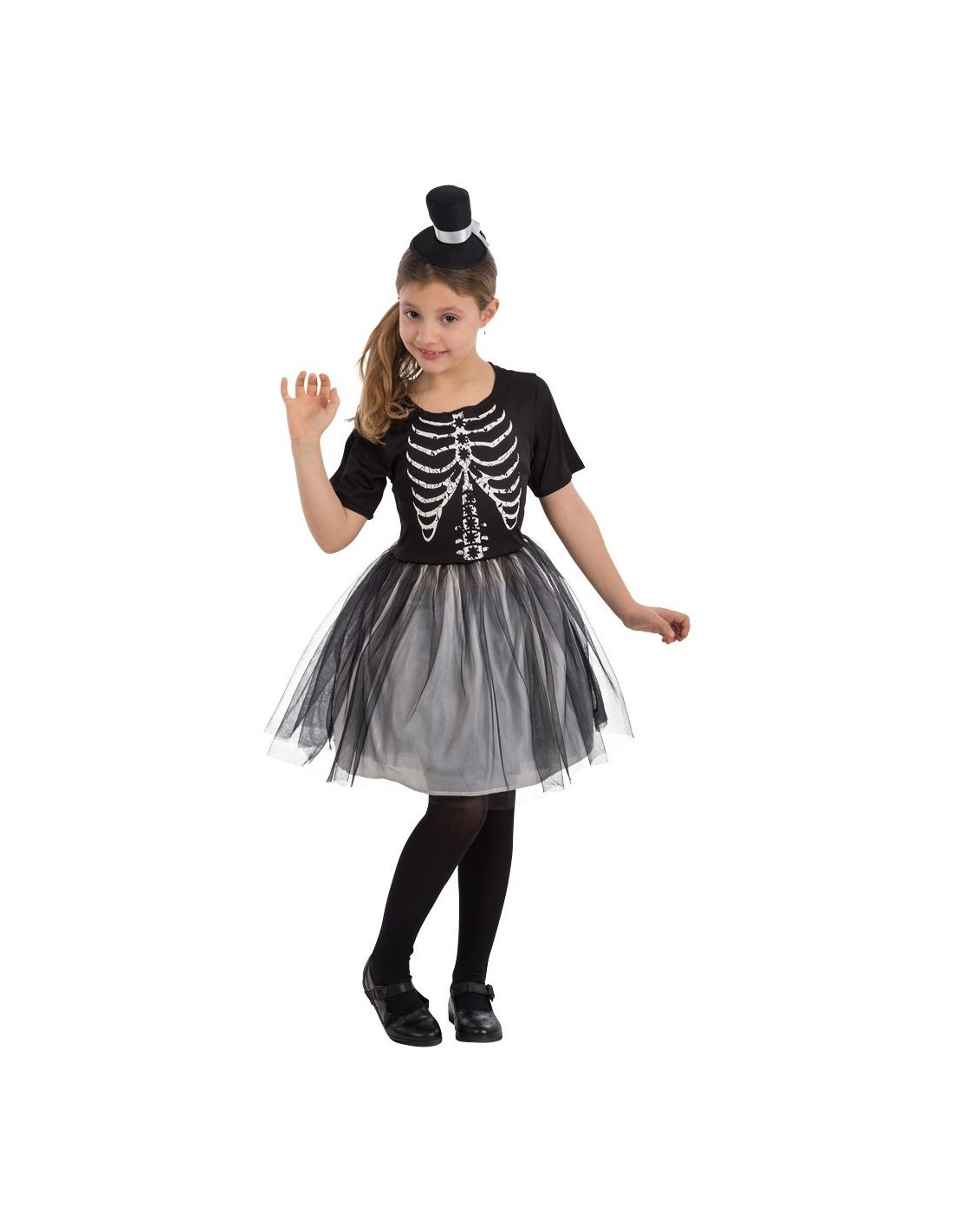 Questo incantevole costume da streghetta scheletro trasforma le piccole in perfette creature della notte per Halloween. Il set include un elegante abito nero decorato con stampa di ossa bianche sul corpetto e una gonna in tulle grigio che dona movimento e magia ad ogni passo. Il costume è realizzato per bambine di 5 anni, offrendo comfort e libertà di movimento durante le feste. I dettagli gotici del design scheletrico si sposano perfettamente con l'aspetto fiabesco della gonna vaporosa, creando un look che unisce il brivido di Halloween alla dolcezza infantile.