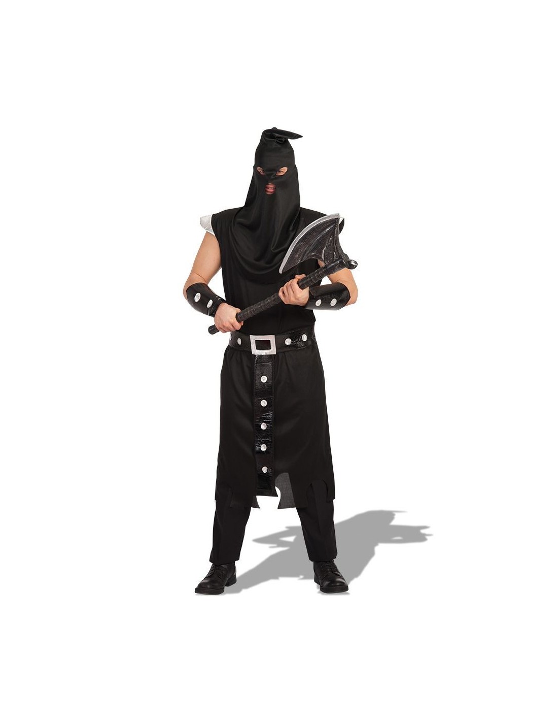 Il costume da boia medievale è perfetto per chi vuole interpretare uno dei personaggi più temuti della storia. Questo set completo include una tunica nera con cappuccio, cintura, polsini e tutti gli accessori necessari per un look autentico e impressionante. Realizzato in tessuto resistente, il costume è disponibile in taglia unica che veste dalla M alla L. Il design ricrea fedelmente l'aspetto del classico boia medievale con dettagli accurati e finiture curate.