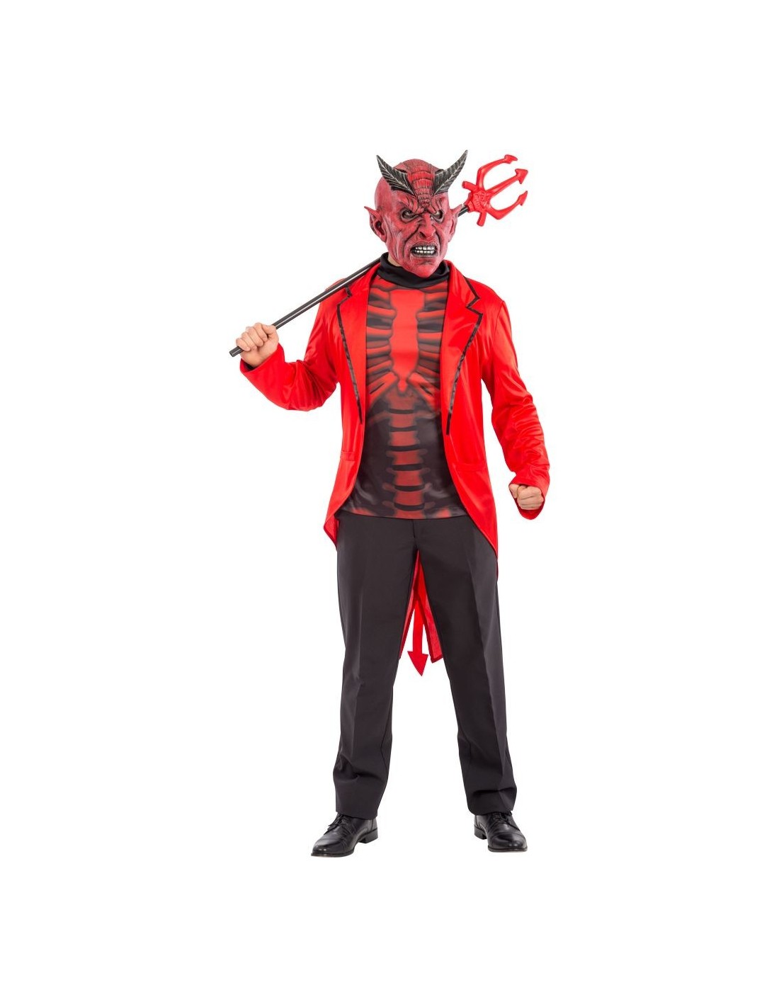 Trasformati nel signore delle tenebre con questo completo da demone dall'aspetto terrificante. Il costume include una giacca rossa con dettagli anatomici muscolari sul torso, pantaloni neri classici e una maschera demoniaca rossa con corna appuntite. L'outfit è disponibile in taglia unica che veste dalla M alla L, perfetto per creare un look spaventoso e d'impatto. La giacca presenta decorazioni che simulano una muscolatura definita, mentre la maschera ha lineamenti demoniaci realistici per un effetto davvero inquietante.