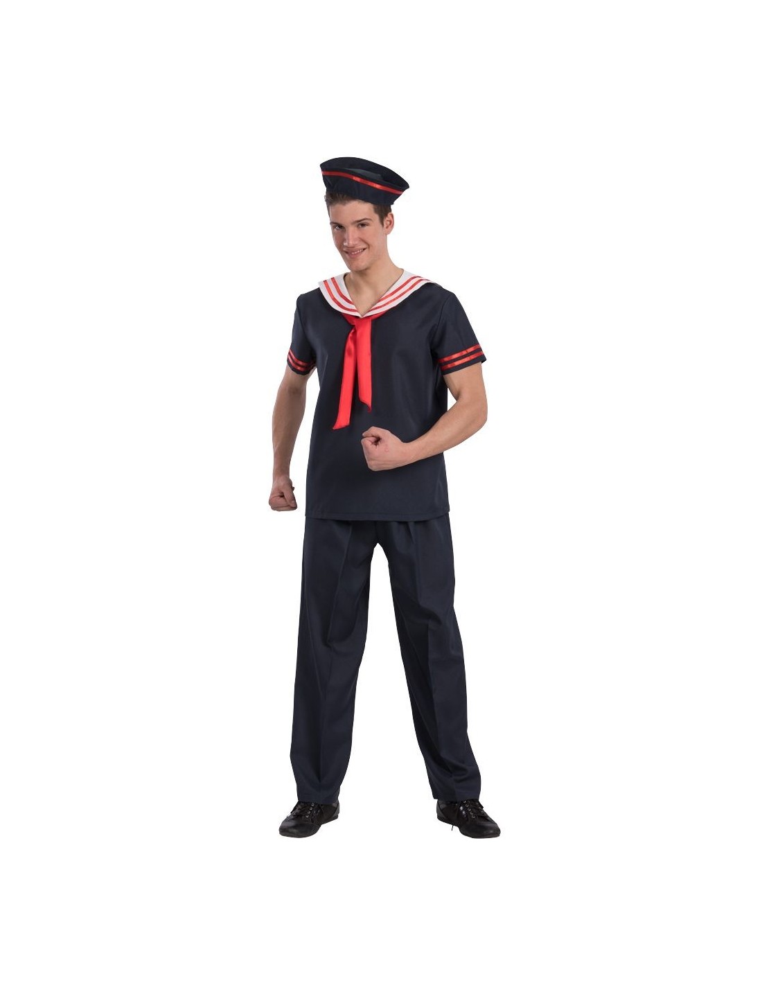 Trasformati in un autentico marinaio con questo costume completo che include camicia navy con dettagli rossi e bianchi, pantaloni coordinati e caratteristico cappello da marinaio. Il set presenta il classico colletto alla marinara con fiocco rosso e bordature bianche che richiamano lo stile navale tradizionale. Disponibile in taglia unica M-L, questo travestimento garantisce una vestibilità comoda per la maggior parte delle corporature maschili. I colori navy, rosso e bianco creano il perfetto look marinaresco.